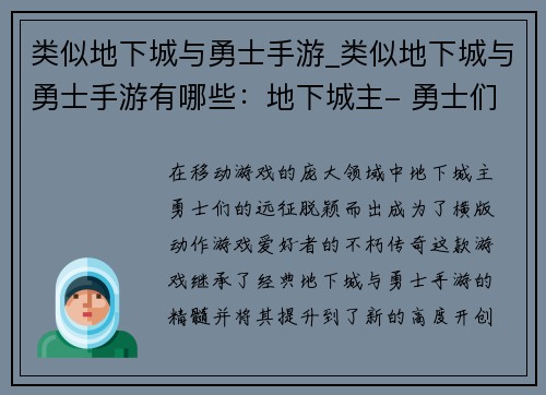 欢迎进入祸世的世界,一场动荡不安、危机四伏的奇幻冒险。在这片广阔而奥秘的土地上,一场史无前例的浩劫即将降临,而只有掌握了祸世的游戏攻略,你才能在这场混乱中生存下来。 探索未知领域九游会(j9)官方网站登录 祸世的游戏攻略是一份神秘的指...